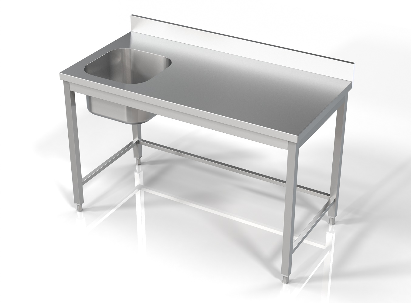 Der Spültisch 1 Links 1400 ist aus hochwertigem Edelstahl gefertigt, was ihn besonders robust und langlebig macht. Er ist für den täglichen Einsatz in stark frequentierten Küchen konzipiert und hält auch hohen Belastungen stand. Dank seiner stabilen Konstruktion ist dieser Spültisch die optimale Wahl für den professionellen Einsatz.