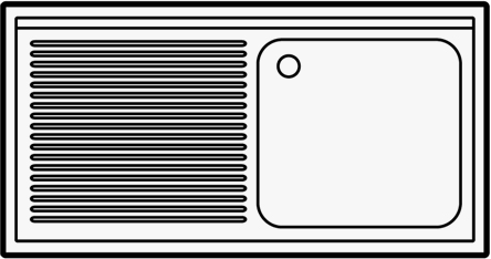 Der Spültisch Grundboden hat die Abmessungen 700mm x 1400mm und ist für den Einbau auf der rechten Seite des Spültischs vorgesehen.