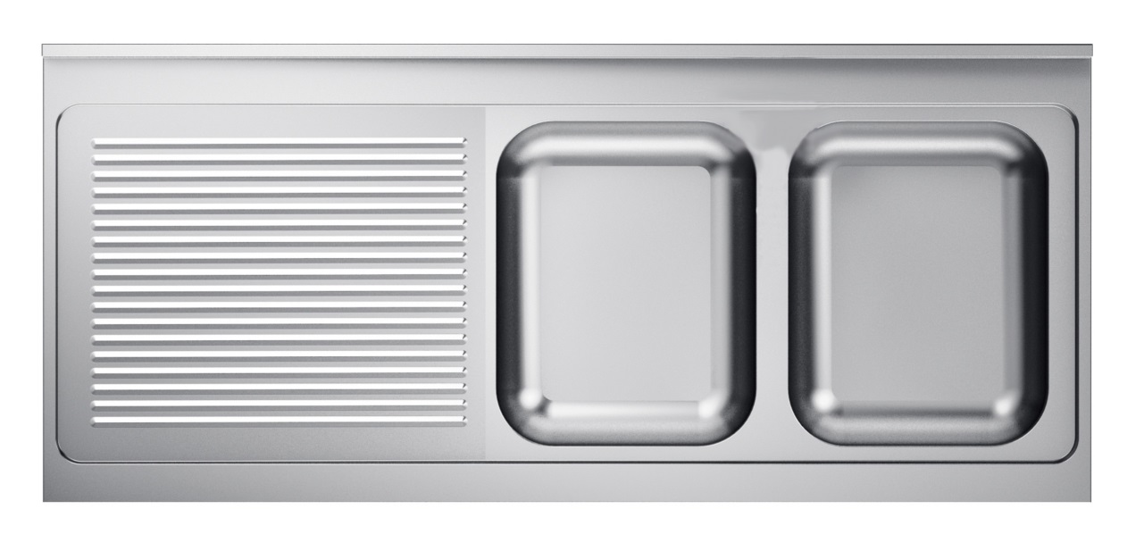 Die Spültischplatte ist aus hochwertigem Edelstahl gefertigt, was sie besonders langlebig und robust macht. Sie ist beständig gegenüber Korrosion und leicht zu reinigen, was sie ideal für den Einsatz in geschäftigen Küchen macht. Die präzise Verarbeitung sorgt für eine glatte Oberfläche ohne scharfe Kanten, was die Sicherheit und den Komfort bei der Nutzung erhöht.