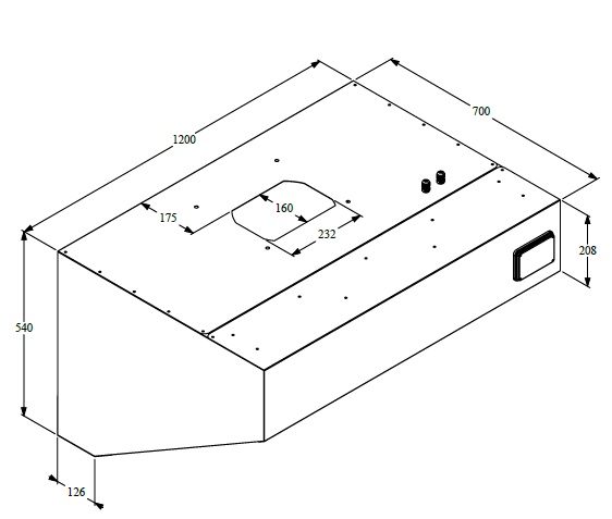 The wall hood has a size of 700 x 1200 mm.