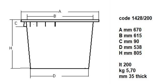 Der Abfallbehälter 200L hat ein Fassungsvermögen von 200 Litern.