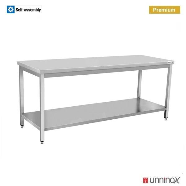 Mit einer Höhe von 850 mm ist der Arbeitstisch für komfortables Arbeiten ausgelegt. Die stabile Konstruktion sorgt für eine zuverlässige Arbeitsfläche im täglichen Küchenbetrieb.