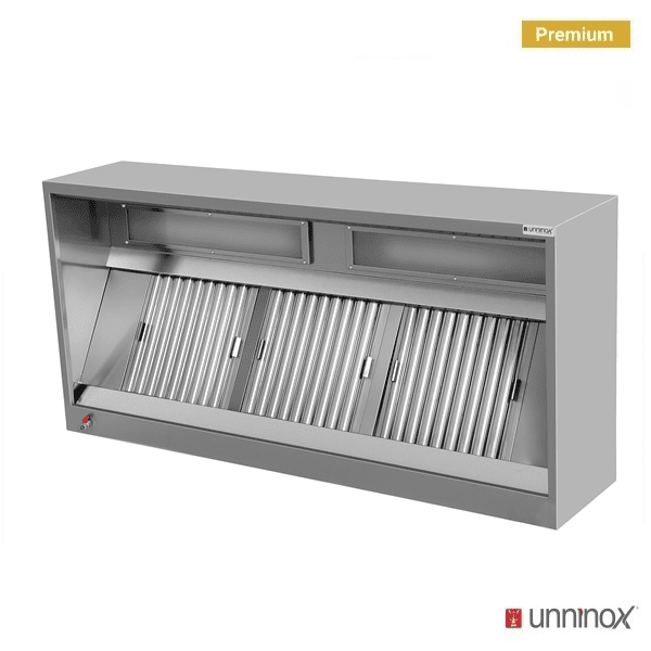 Die Box Modell PREMIUM-GESCHWEISST Dunstabzugshaube ist die ideale Lösung für professionelle Küchen mit höchsten Ansprüchen. Sie überzeugt durch ihre robuste Bauweise und sorgt für eine saubere, hygienische Umgebung.
