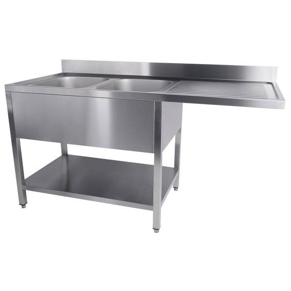 Diese Spüle mit zwei Becken auf der linken Seite ist die ideale Lösung für professionelle Küchen. Sie überzeugt durch robuste Bauweise und durchdachte Funktionalität.