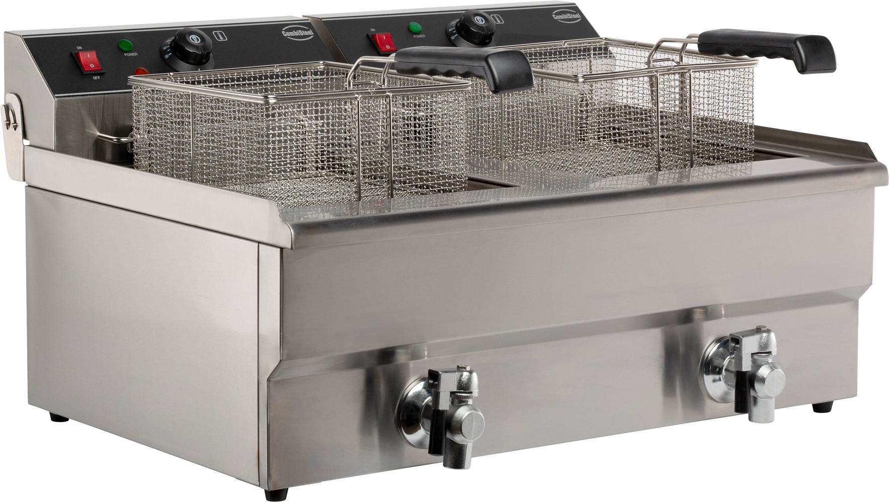 Die Tischfriteuse hat ein Fassungsvermögen von 2x10 Litern.