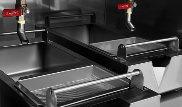 Diese leistungsstarke Doppel-Fritteuse überzeugt durch Effizienz und smarte Technik. Ideal für professionelle Küchen, die Wert auf Energieeinsparung und einfache Reinigung legen.