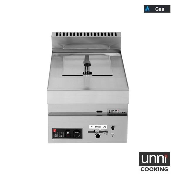 Die Gas-Fritteuse aus der 650 LINE von UnniCooking ist aus hochwertigem Edelstahl gefertigt und bietet ein großzügiges Fassungsvermögen von 8 Litern. Sie liefert perfekte Pommes – auch bei hohem Andrang. Dank ihrer beeindruckenden Geschwindigkeit und Kapazität bereiten Sie mühelos große Mengen knuspriger Pommes zu.