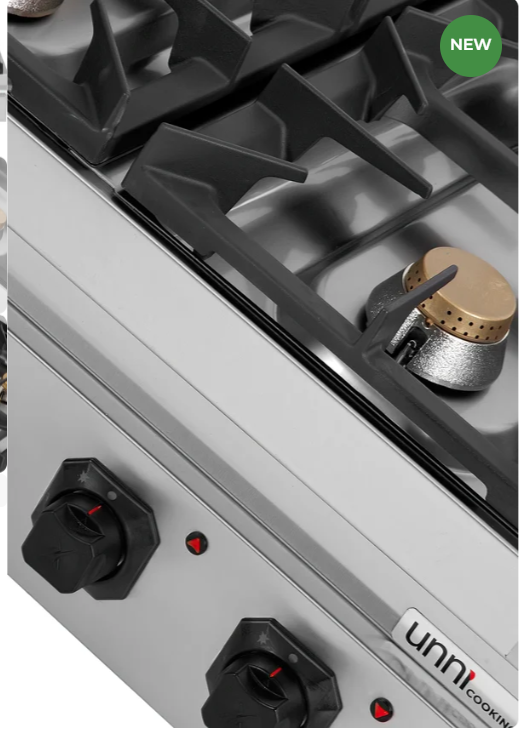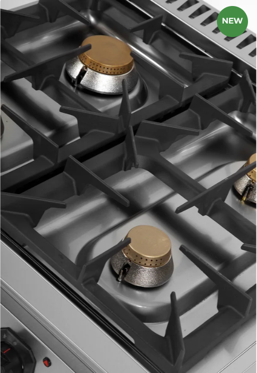 Als kompakte Desktop-Einheit lässt sich der Gasherd problemlos auf vorhandenen Arbeitsflächen integrieren. Das erleichtert die Planung von Gastronomieküchen und ermöglicht eine flexible Aufstellung.
