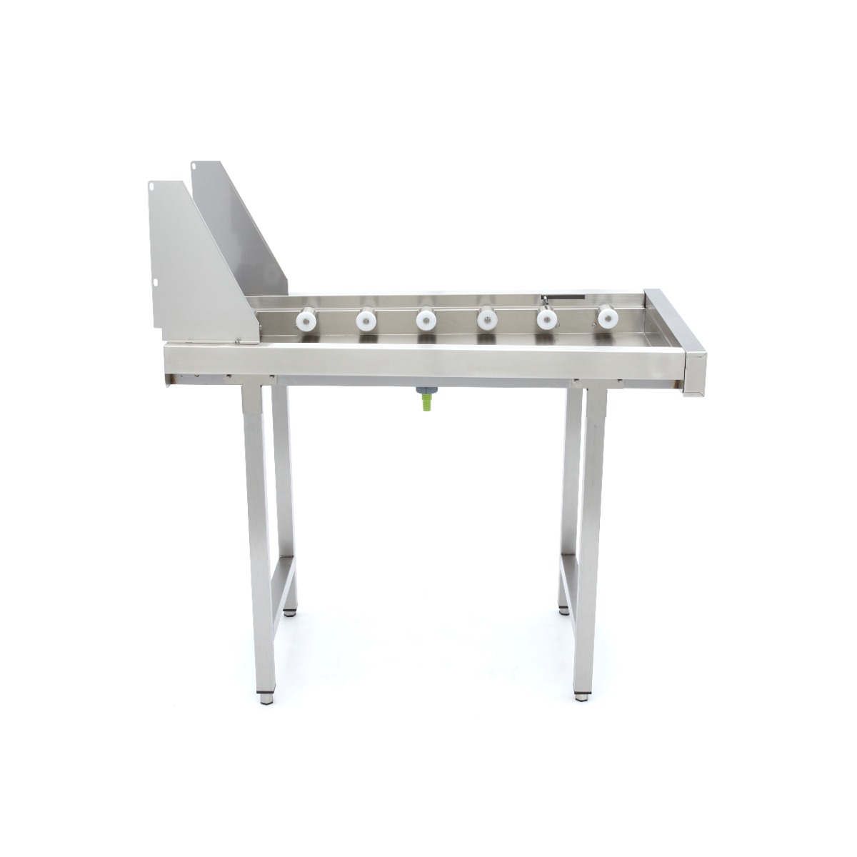 Der gerade Rollentisch aus Edelstahl ist die ideale Ergänzung für gewerbliche Geschirrspüler mit Einschubträger. Durch die robuste Edelstahlkonstruktion und die integrierten Rollen wird das saubere Geschirr schnell, sicher und ohne Komplikationen aus der Spülmaschine transportiert.
