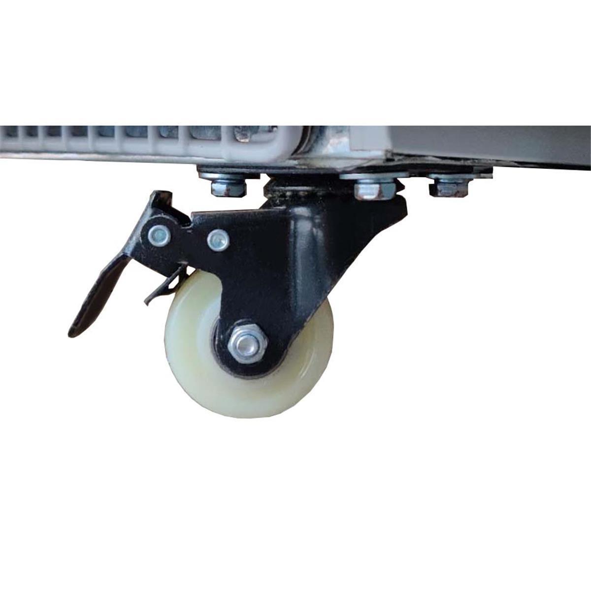 - Geräte mit 4 Rädern, 2 mit Bremse und 2 ohne Bremse (Umrüstung auf Füße möglich)