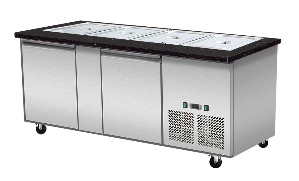 Die Theke kann eine Temperatur im Bereich von 0°C bis +8°C aufrechterhalten.