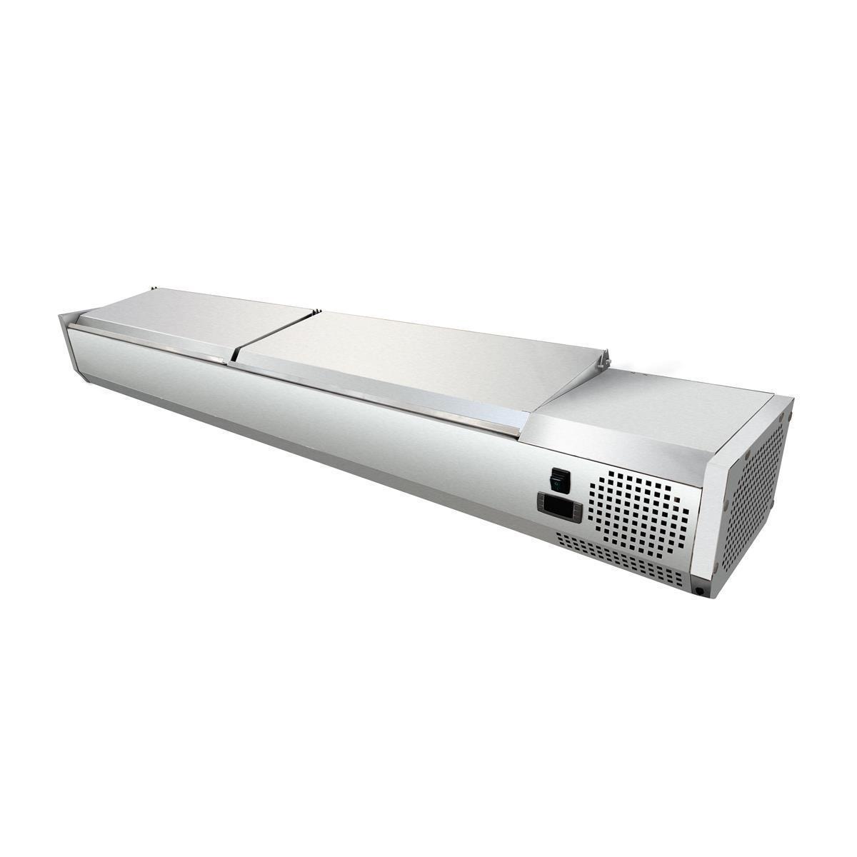 Skyrainbow Kühltaufsatzvitrine mit Edelstahldeckel - 1800 x 395 x 255 - 8x GN1/3, Deckel geteilt