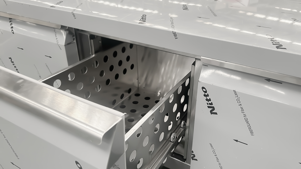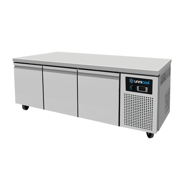 Die niedrige Kühltheke mit drei Schubladen ist perfekt für kompakte Küchen. Dank der Umluftkühlung bleibt die Temperatur im Inneren konstant und Ihre Lebensmittel sind stets optimal gekühlt. Die hochwertige Verarbeitung und die robusten Schubladenschienen sorgen für einen langlebigen und reibungslosen Betrieb – auch bei intensiver Nutzung.