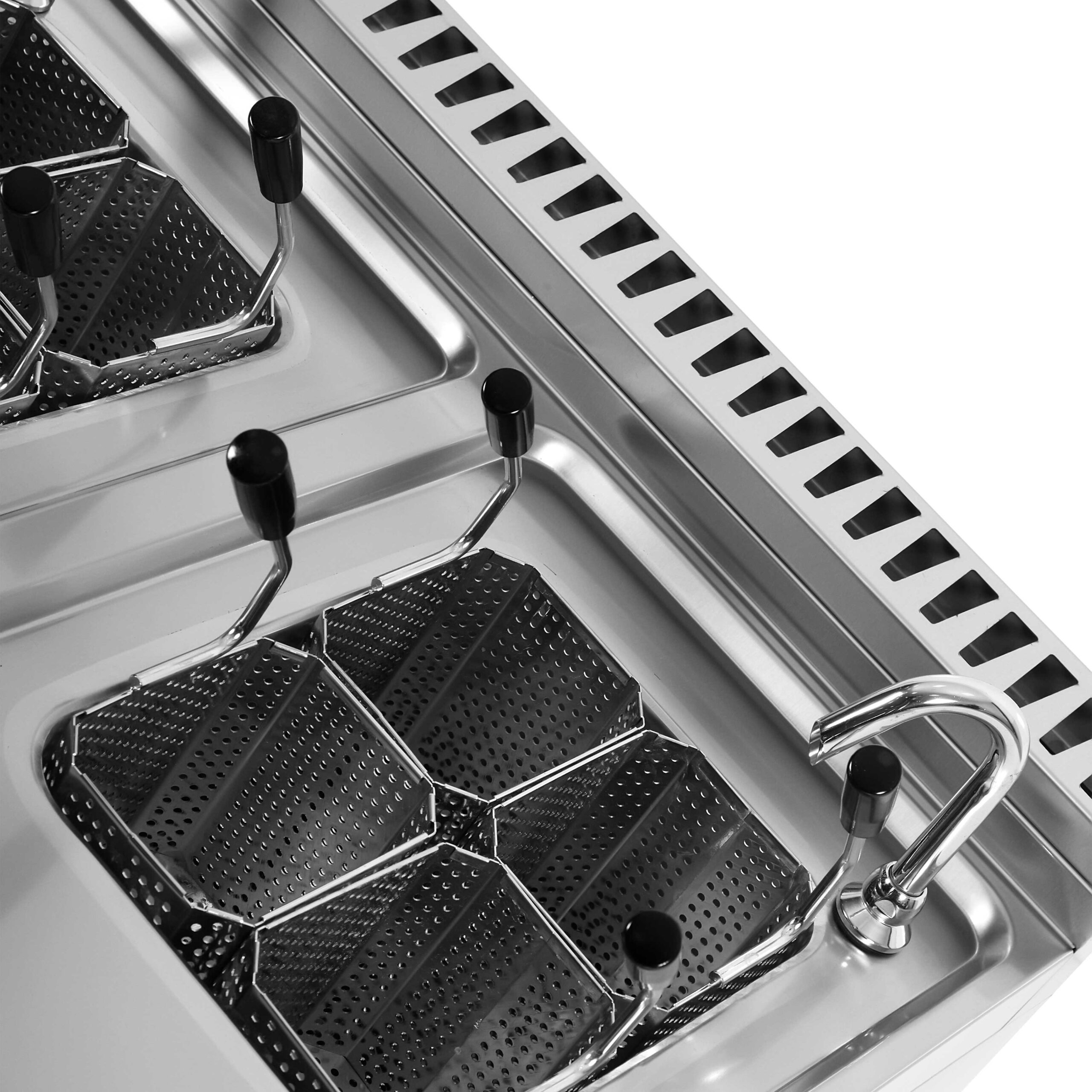 Mit dem Pasta-Kocher 2x12L gelingt das Kochen großer Mengen Pasta im Handumdrehen. Die robuste Edelstahlkonstruktion sorgt für Langlebigkeit und Hygiene im täglichen Einsatz.