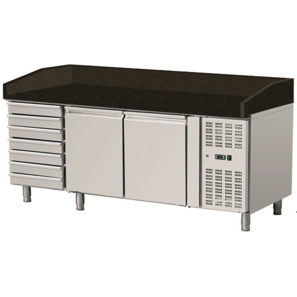 Skyrainbow Pizzakühltisch Granit Star Galaxy schwarz, 7 ungekühlte Schubladen 2 Türen, -2° bis +8° C, 2025 x 800 x 860
