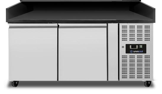 Pizza-Kühltisch 1510 mm – 2 Türen (EN 600x400) in Schwarz mit Granit