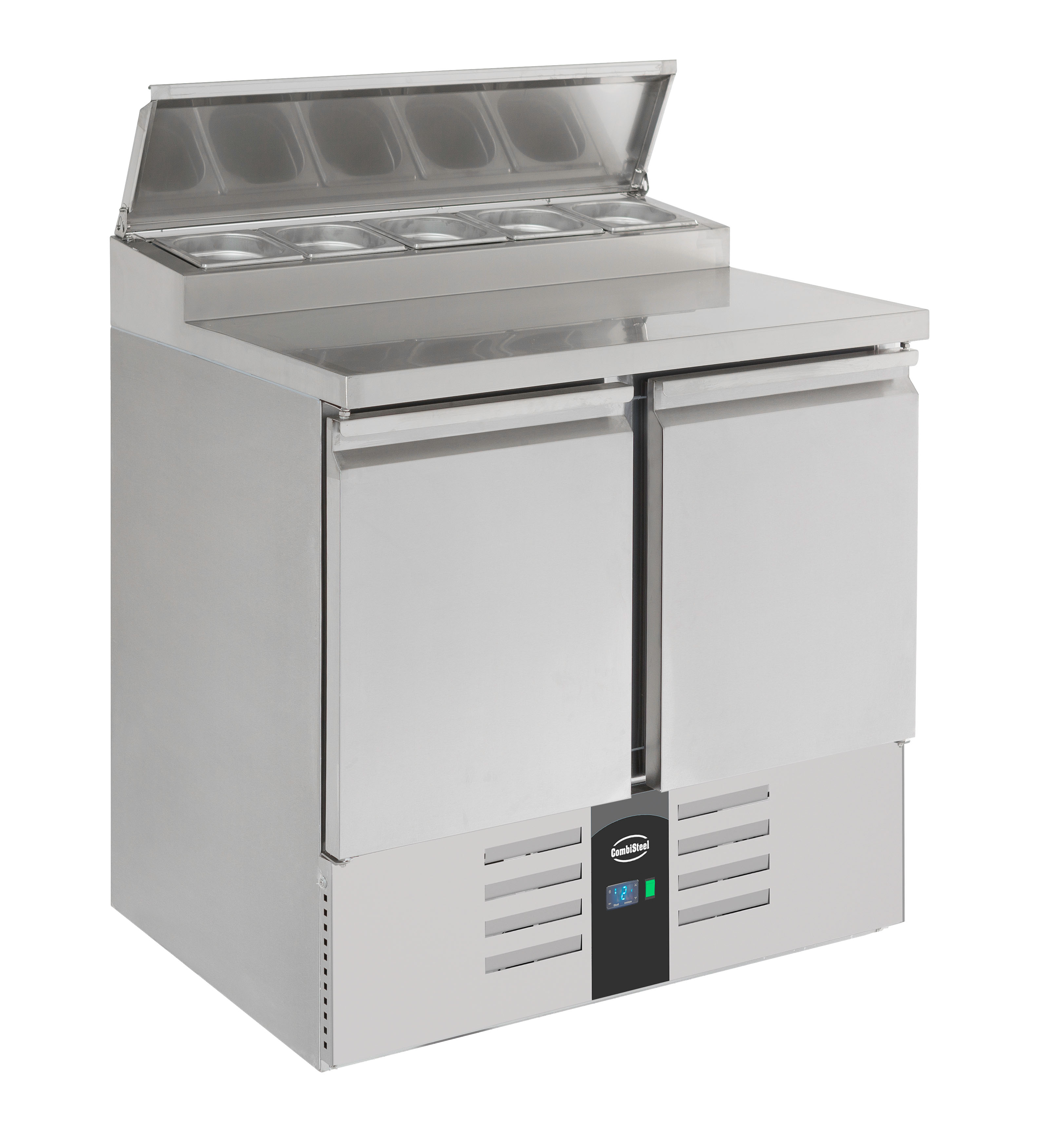 Die Saladette verfügt über 2 Türen, die den Zugang zu den gekühlten GN-Behältern ermöglichen.