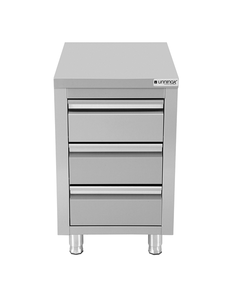 Das Modell verfügt über drei separate Schubladen, die eine strukturierte Aufbewahrung verschiedener Materialien ermöglichen.