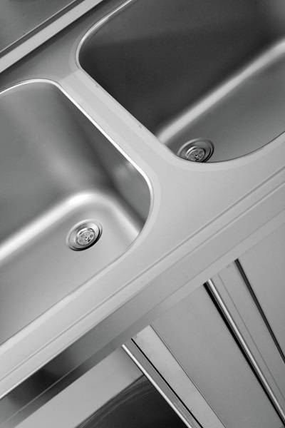 Dank der robusten Bauweise eignet sich das Modell hervorragend für den täglichen, intensiven Einsatz. Die beiden großen Becken bieten viel Platz für Geschirr und Küchenutensilien und sorgen für effizientes Arbeiten.