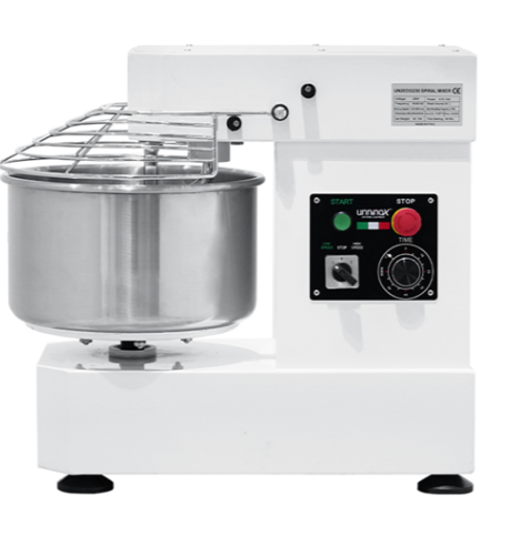 Der Mixer eignet sich für Pizzerien, Bäckereien und Gastronomiebetriebe, die regelmäßig kleinere bis mittlere Teigmengen verarbeiten.
