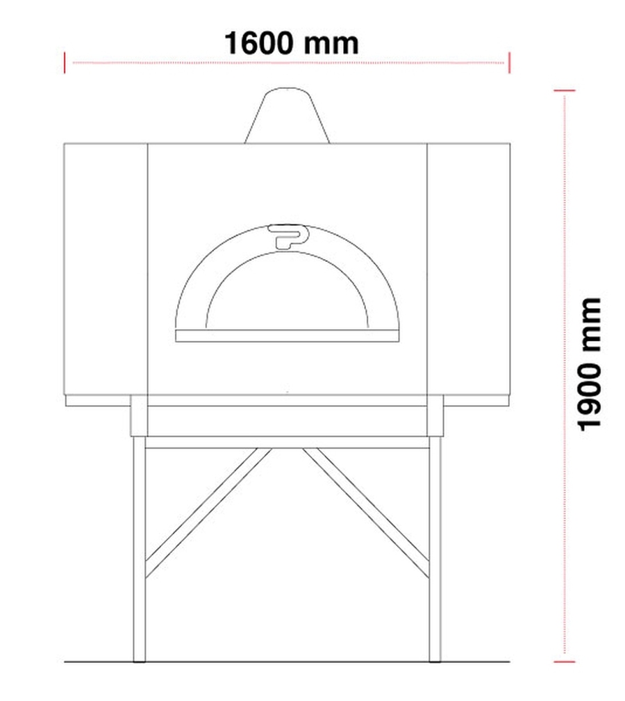 Der Pizzaofen ist aus hochwertigem Holz gefertigt und verfügt über eine robuste Konstruktion, die eine lange Lebensdauer gewährleistet. Mit seinen Maßen von B1600 x T1500 x H1900 mm passt er problemlos in jede professionelle Küche oder Pizzeria.