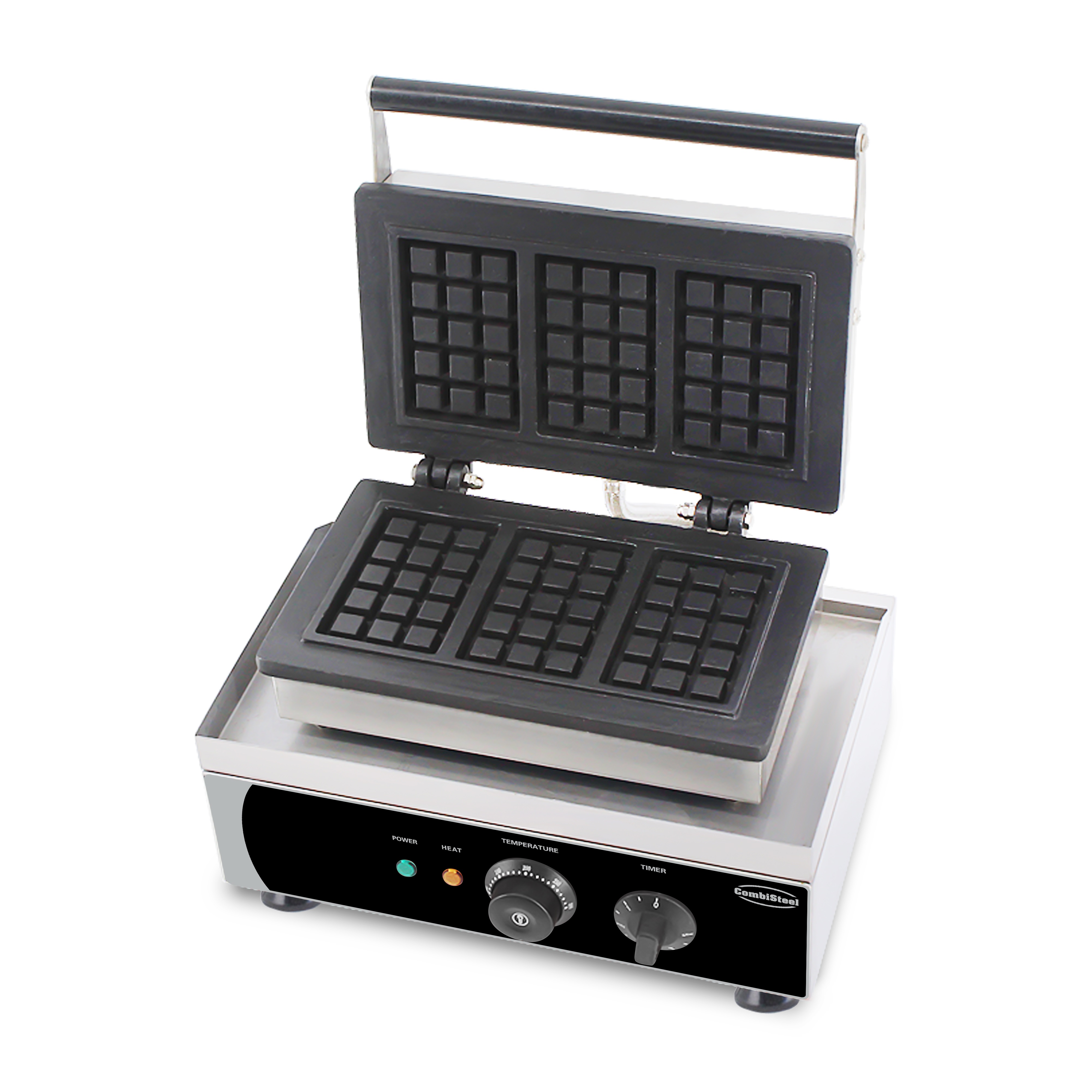 Das Waffeleisen 3 Stück Brüsseler Waffel von COMBISTEEL bietet die perfekte Lösung für Cafés, Foodtrucks, Marktstände und Gastronomiebetriebe, die authentische Belgische Waffeln schnell und in bester Qualität servieren möchten. Mit einer Kapazität für 3 Waffeln sorgt dieses Gerät für eine effiziente und gleichmäßige Produktion köstlicher, goldbrauner Brüsseler Waffeln.