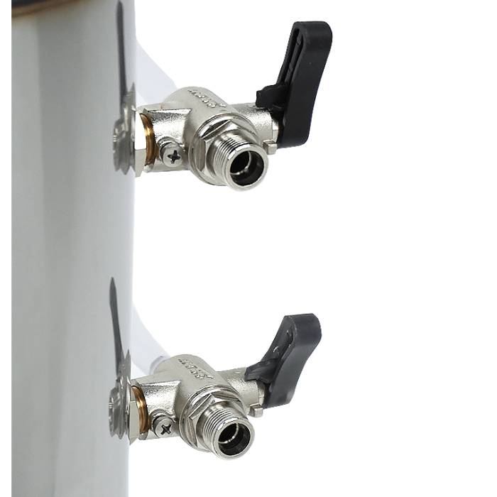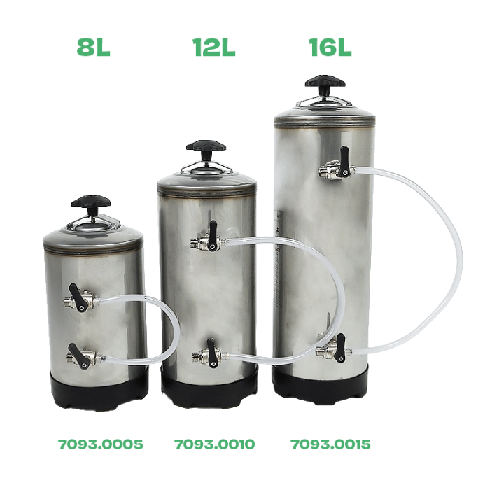 Die 8-Liter-Ausführung ist besonders platzsparend und lässt sich durch den Anschluss G 3/8” M – G 3/4” M unkompliziert in bestehende Systeme einbinden.
