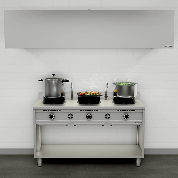 Wok-Herde | Wokherd | Gas-Wok-Herd - 3x15 kW - 3 Kochzonen
